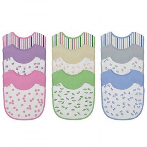 Absorbent terry bib with waterproof inner layer. Velcro closure, knitted terry. Size: Stage 1/2 (Birth-6 mo)