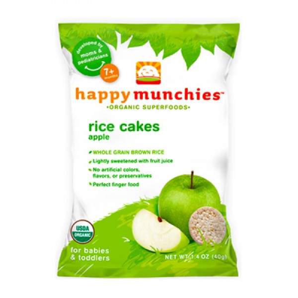 Happy Munchies Organic Puffed Corn Snacks are the perfect treat for your toddler. These delicious organic apple rice cakes are made with whole grain puffed brown rice and lightly sweetened with fruit juice and contain no artificial colors or flavors. Their miniature size makes them easy to grasp for little hands, helping your child learn independent eating skills. Their firm but gentle texture also provides comfort for teething babies.